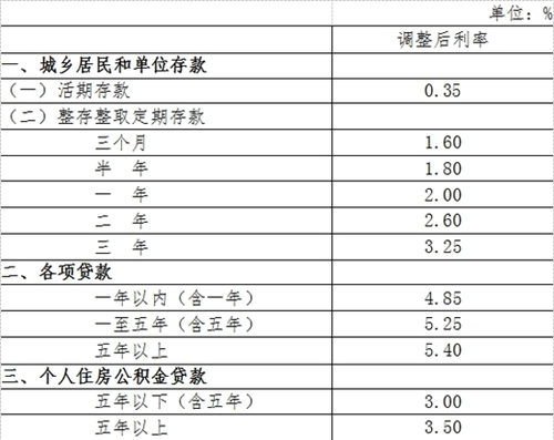 同时,自2015年6月28日起下调金融机构人民币贷款和存款基准利率,以进一步降低企业融资成本。其中,金融机构一年期贷款基准利率下调0.25个百分点至4.85%;一年期存款基准利率下调0.25个百分点至2%;其他各档次贷款及存款基准利率、个人住房公积金存贷款利率相应调整。(完)