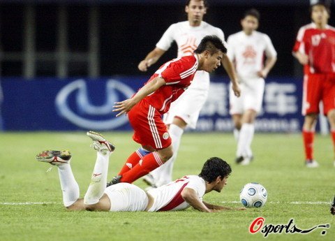 中国队的进攻有声有色,队员们传切配合颇有章法。第73分钟,中国队获得了下半场进球的最佳机会,王永珀前场右翼挑球过人时对手手球,郑智任意球传至禁区中路,不过何扬头球攻门击中横梁弹出。