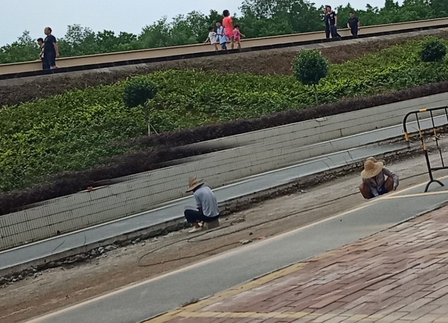 非正常人研究院 说: 不错呀 终于铺水泥了 点击展开... 噜是否搅错了?是九小正门右边与海岸城中间向明湖商场侧边走出海滨大道那一小段,都不知是谁负任铺的,噜贴中所说的九小前面与星汇湾海堤路早着呢、 请看清下图,貌似在打洞插钢铁?
