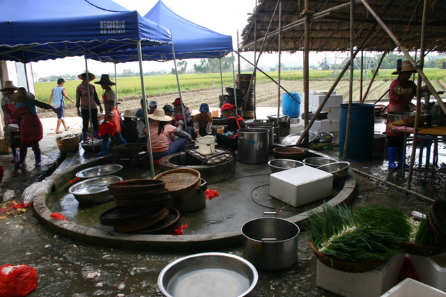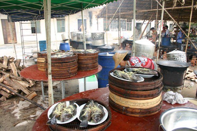 他们回家修路,方便乡邻,他们在家摆酒168围台酒席,乡邻也有大餐吃,乡邻帮忙端菜也有150元一天。