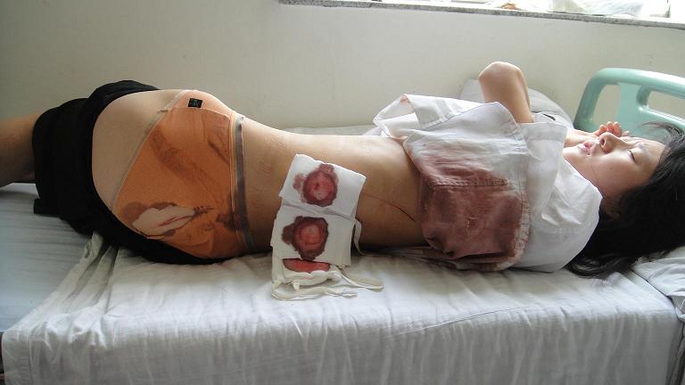 受伤最重的女职工张美霞缝合的伤口上至今还贴着大块纱布,据张美霞描述,她是被执法者破门而入时砸倒的玻璃门碎片刺破腹腔及臀部,当时血流不止,染透了衣裤。但当她痛苦地哀求救命时,得到的却是某执法人员的拳打脚踢。[attachmentid=226608]