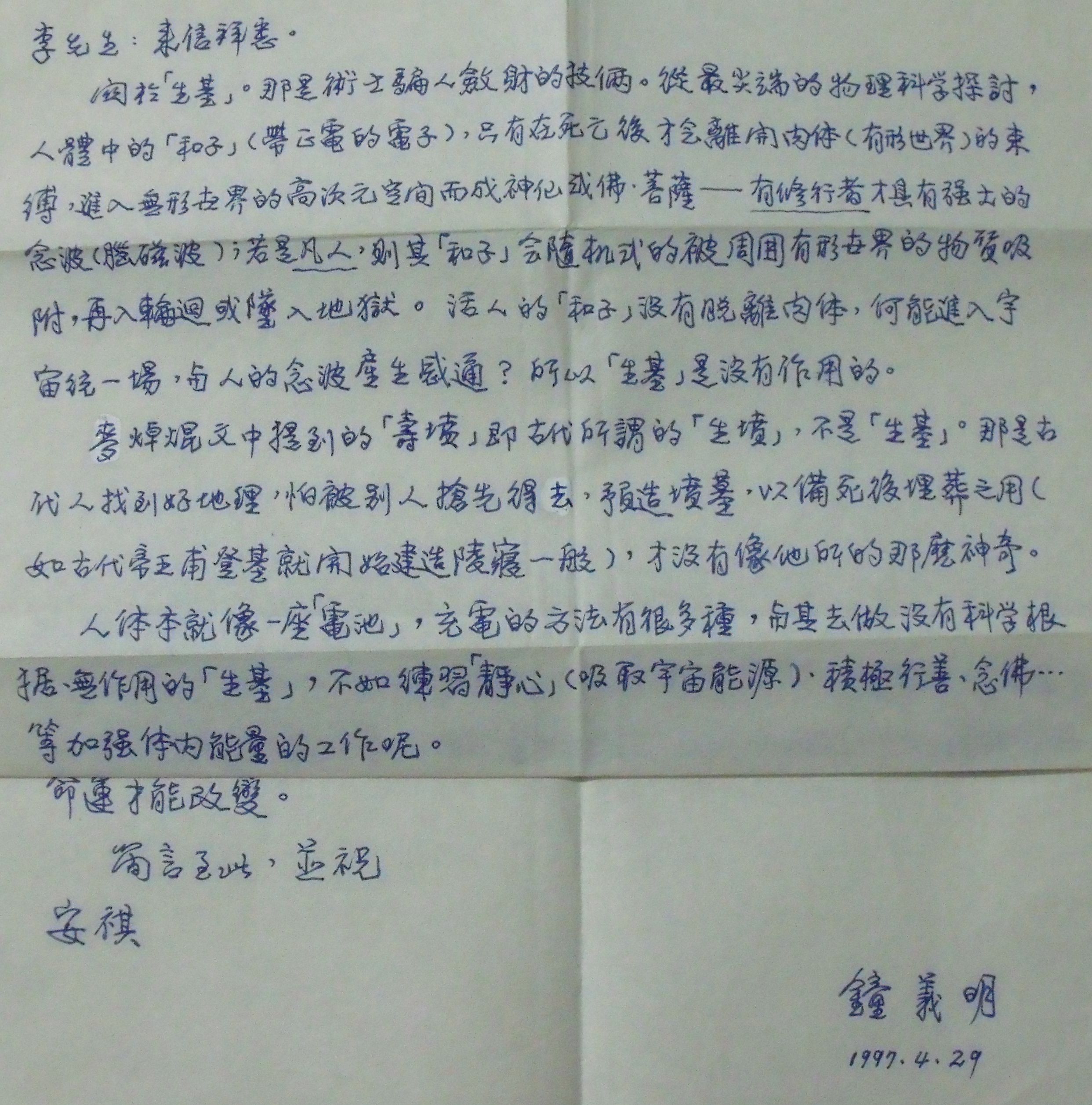 全城狂N生基,不^J樯基不可S便N:「N生基是害法g,如非必要不要N,因榉N生基似提早透支非分之福,改原淼囊蚬,所以N了生基一定要行善e德,否t可能晚福不保,死於非命!」