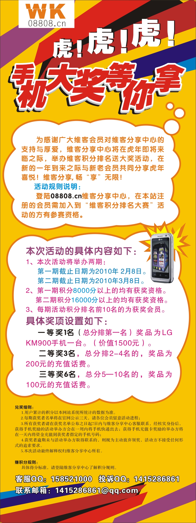 为感谢广大维客会员对维客分享中心的支持与厚爱,维客分享中心将在虎年即将来临之际,举办维客积分排名送大奖活动,在新的一年到来之际与新老会员共同分享虎年喜悦!维客分享, 畅“享”无限!