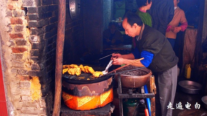 电城有个煎饼大师叫做煎饼全,他最大的衔头就是“电白第一炸”,本人在电城经常光顾全哥的生意。