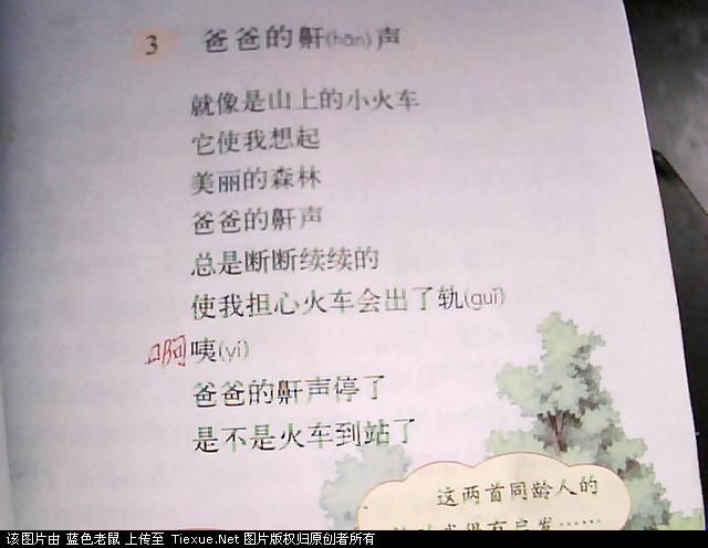 迷 迷你哥 学前班 注册 2009-09-18 消息 61 反馈评分 0 点数 0 2010-01-25 #1 爸爸的鼾声 就像是山上的小火车 它使我想起 美丽的森林 爸爸的鼾声 总是断断续续的 使我担心火车会出了轨 咦 爸爸的鼾声停了 是不是火车到站了
