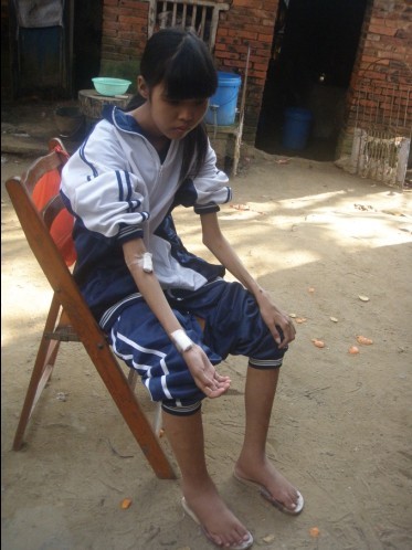 到她家探访时看到她之后心痛而心酸地流泪,备感无奈!看到她因痛到无法站,坐,睡,只能艰难的扒在椅子上找依靠。可想她的痛苦谁能分担???就连晚上睡觉也是这个姿势!苍天啊!!!病魔夺走了她该有的校园生活和应有的快乐。