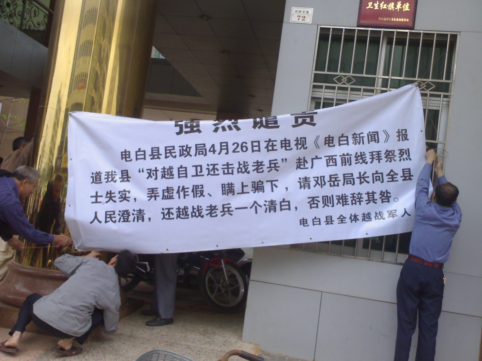 建议:起诉这四个人侵犯其它的电白籍越战军人的人权,冒用“全体电白县越战军人”的名誉。