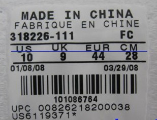 下面说的方法是07和08年生产NIKE鞋的鞋标规则,正如我上面所说,NIKE公司为了防伪,每隔一段时间都会变换鞋标的规则,所以如果你买的是很旧款的鞋按这个规则就不适用了。说得十分详尽。