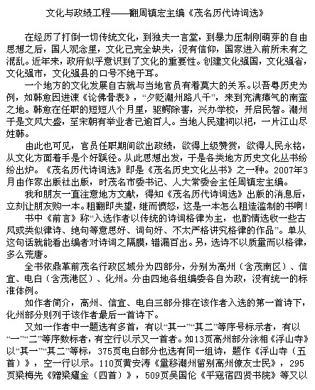 校 校董大人 博士生 注册 2005-09-04 帖子 1,346 反馈评分 3 点数 61 2010-05-22 #3 也不能说人家周大炮是没文化之人吧,起码他都是华师出身,在大学工作过的,我等常在论坛混的电白教师在这点上应该是自叹不如的。