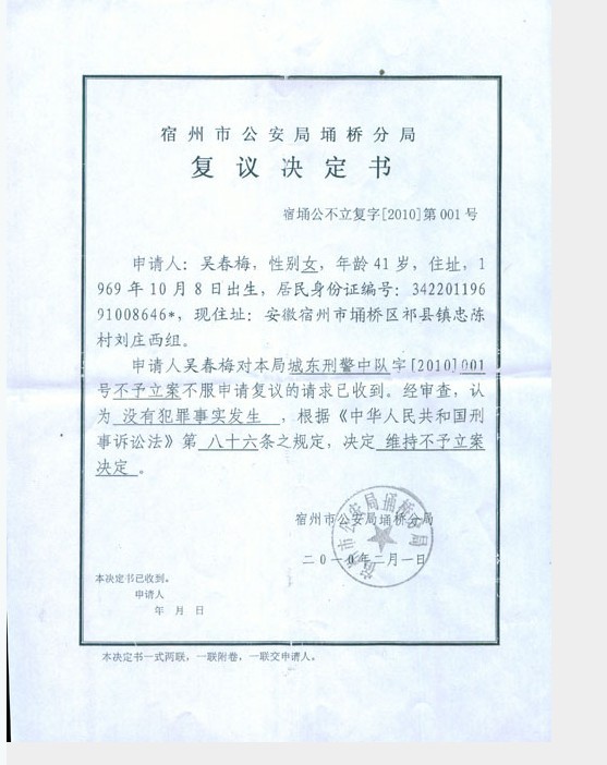 安徽宿州:公安掩盖命案真相,一个弱女子的控诉