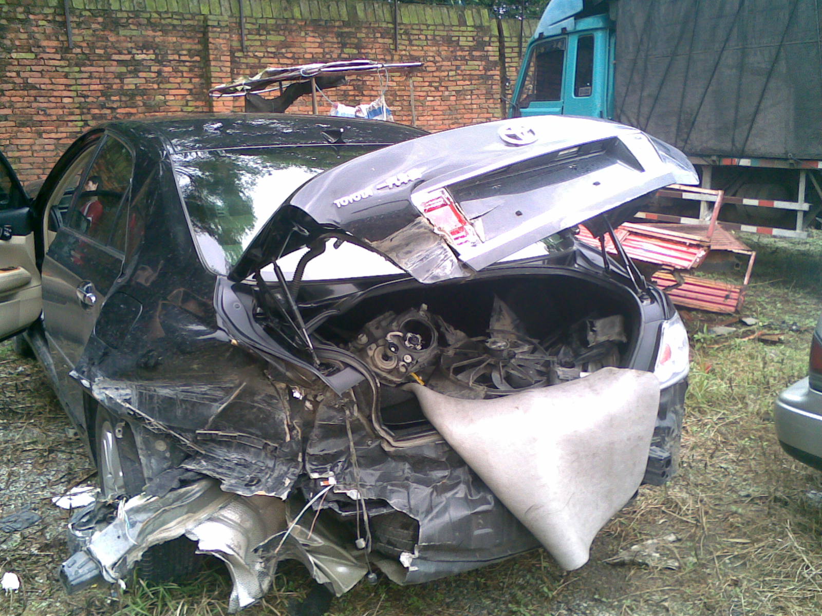 下面是一汽丰田锐志轿车车祸照片: