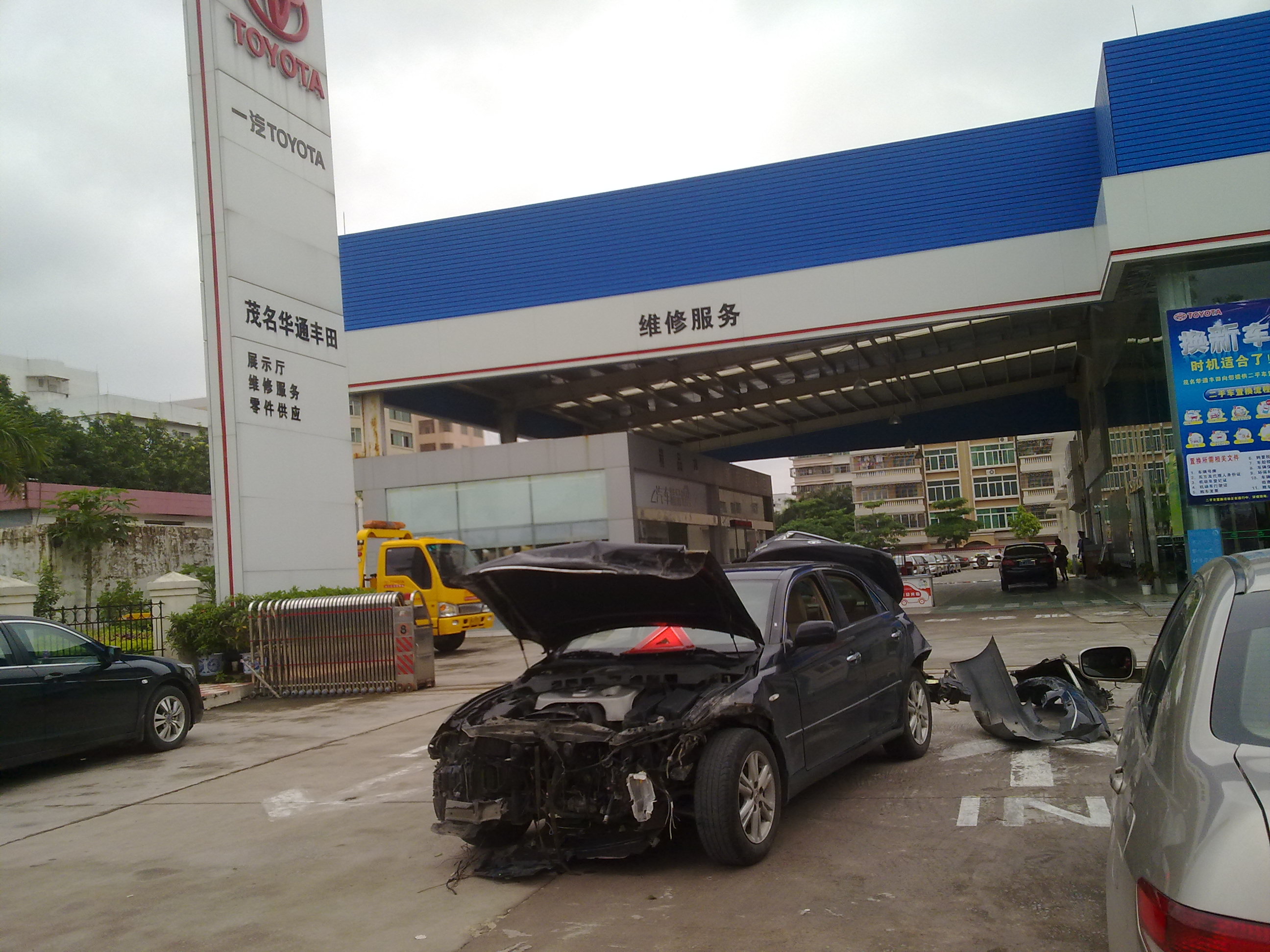 六月十号一气丰田公司给电话车主,说车子非完全正面撞击和车速未达30-35时速气囊是不会爆出的,并且茂名一汽丰田的管理人员还说了一句让人感到十分气愤的话,茂名一汽丰田管理人员说:你们的车子不是在我们这里买的,在哪里买就拖去哪里。不停的推责任,当然车主无法接受这个答复,车子的正面可以说损坏程度已经是车头的3/2的面积了。当时一气丰田的管理人员爱理不理的。