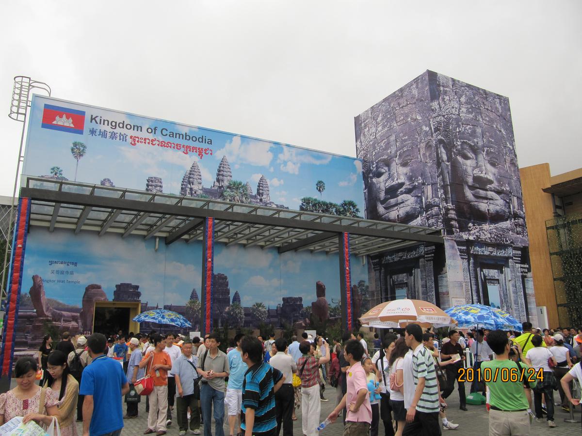 柬埔寨馆大门口,柬埔寨国家特色音乐表演。