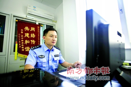 在网上,他是刚满周岁、赫赫有名的“永安警长”,24小时“蹲点”,向网民搜集线索,并随时接受拍砖;在线下,他只是佛山市禅城公安分局永安派出所一名38岁的普通民警廖海飙,偶尔也披上“马甲”,向人们讲述自己身边的新警察故事。