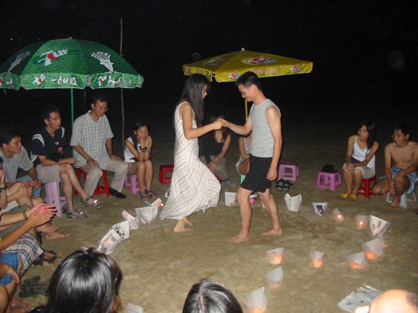 晚上吃饱后,听着海浪,吹着海风,在高大的椰树下大家一起玩团队游戏,相与PK,当然输了的队伍可是有惩罚的,呵呵。尽情地玩乐就是了。夜深了,玩累了,大家还可以观繁星赏皓月,聊心声……静静入睡。