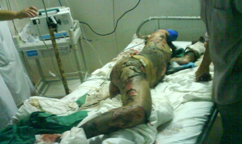 在医院的抢救室里,七八个重伤者尚未有神志,全身灰黑如碳,一些被炸伤的,皮开肉绽,惨不忍睹,医院调集了大量的医生护士在紧急的抢救中。现场有一个六十多岁的老人说,他的老伴,大女儿以及大女儿的男朋友都被严重炸伤,目前还没有恢复神志,正在接受医生的抢救。6岁左右的小女儿被这个情形吓呆了,焦虑的陪护在母亲身旁,盼望痛苦中的母亲早日醒来。