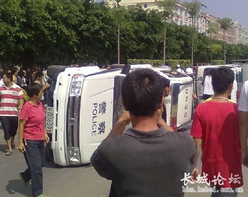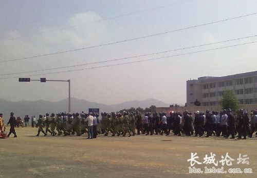 其实还有一张一个公安干警被打得一只眼鲜血直流,我不忍心发,因为他们也是这个社会现实里的受害者,他们迫不得已受命,可是事实也是:他们是这起事件"帮凶"。