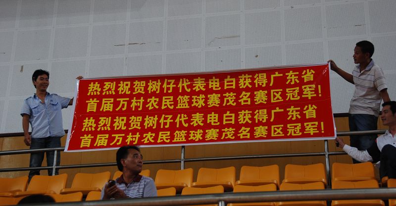 热烈祝贺树仔篮球队代表电白县参加广东省首届万村农民篮球赛,以五战全胜的骄人成绩夺得茂名赛区冠军,并于12月份代表茂名市参加在广州举行的全省总决赛。我们的目标是力争全省冠军,为茂名争光,为家乡赢得更高的荣誉!