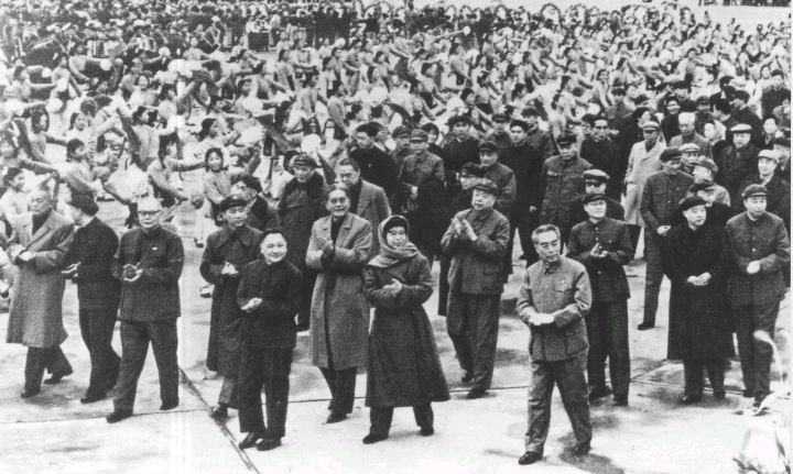 1960年,周恩来、宋庆龄、朱德、邓小平在天安门城楼上。