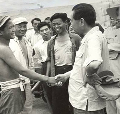 1958年6月,周恩来冒着酷暑到怀柔水库修建工地。