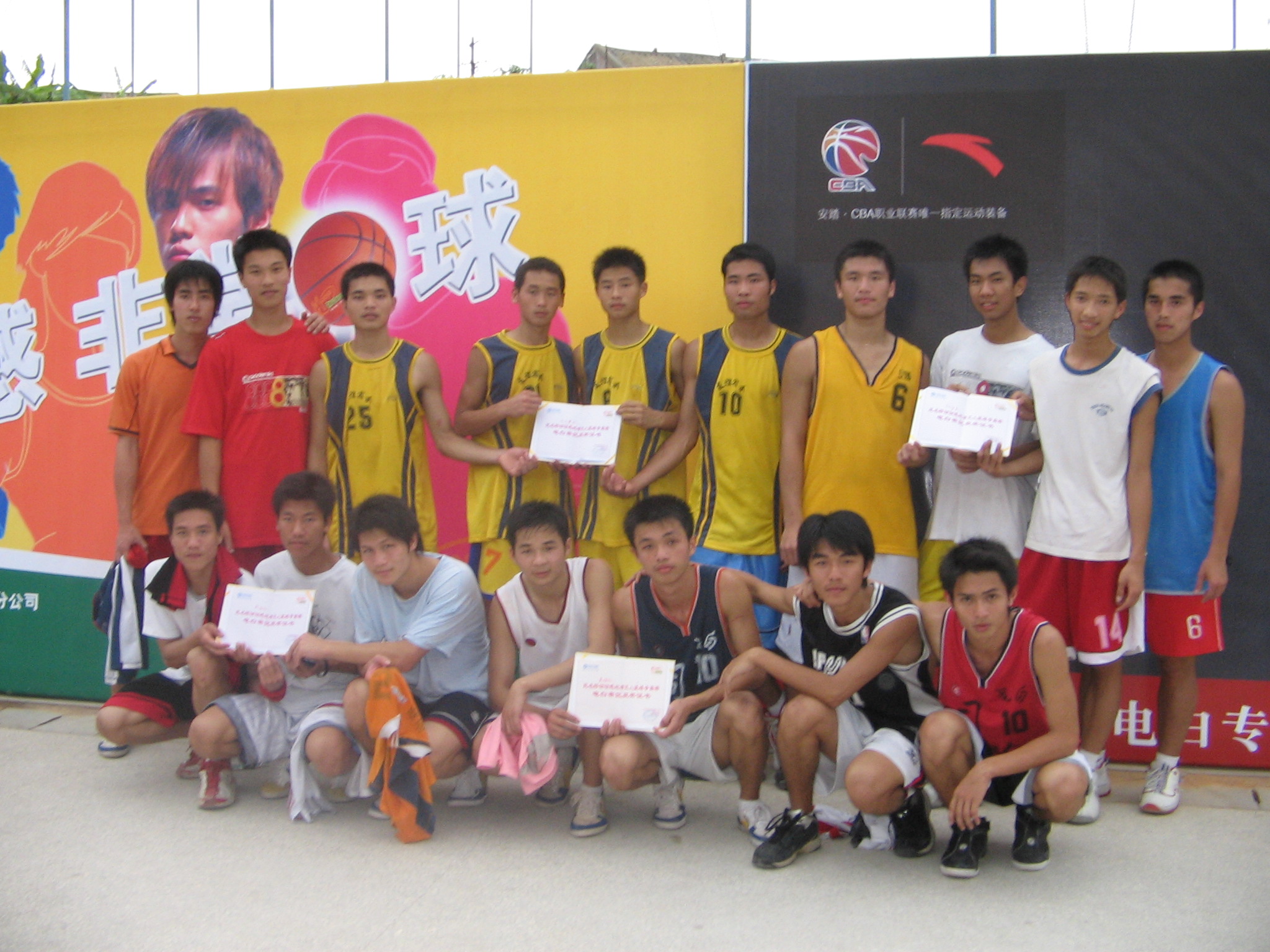 没能出线的球队也请你们不要灰心。我本人认为其中有不少球队的实力还是不错的。如一中的凌云篮球队,还有水中的球队,,,,我忘了叫什么名字,请见谅。是染黄色头发的,球技很好,命中率高。这些都是很有星味的球队。希望明年的比赛能再看到这些球队的名字。看到了这着年轻人的照片。让我想起我以前在校球队尽情挥舞青春的日子。年轻的感觉真是好.