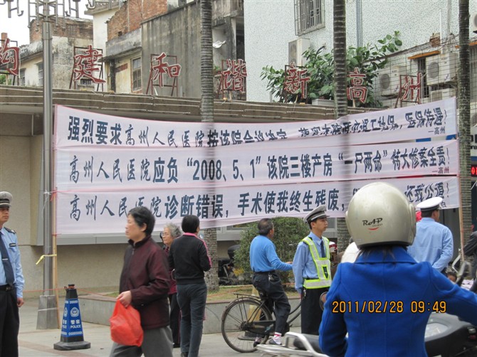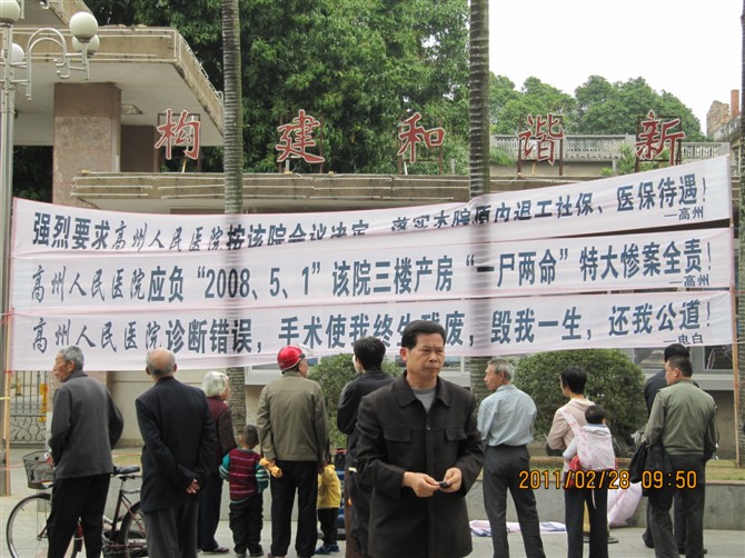 就这样,无辜的我被高州市人民医院的庸医无情的一刀给阉了,活生生地剥夺了做为女人应有的夫妻幸福生活和应有的一切!我刚30出头,本是事业的开端,但就是高州人民医院的草率造成了我今天的生理缺陷和终生伤残!而且还因我生理功能的丧失无法与丈夫过正常的夫妻生活,婚姻家庭出现了严重的危机,还要承受来自别人的闲言碎语,我一个弱女人的精神几乎全崩溃了……这一切,完全是由高州市人民医院的庸医违反医疗规程及误诊而一手造成的啊!于是我忍着巨大的痛苦,不得不委托律师向高州人民医院讨还一个公道。当时高州人民医院的领导就回复我“你有本事就上诉嘛,我医院随时奉陪”。人争一口气,佛争一柱香,我被逼无奈,只好向高州人民法院起诉(要求高州人民医院赔偿损失,在这里,我要向广大人民群众阐明一个事实,这就是高州市人民医院的庸医,有意也好无意也罢,不问青红皂白,把我的人生最宝贵的子宫及双附件“一刀切”,这是医院不负责任和不敢面对事实。面对他们失误所造成的事实,该院非但不理解、不同情对受害者所带来的一生的创伤和痛苦,竟然生怕该院这些年来所获得的所谓“全国百佳医院”、“全国五一劳动奖状单位”、“全国卫生系统先进集体”的桂冠称号不称配,还生怕医院的威望威信一落千丈,不敢解剖自己,不敢承担恶果。俗话说金无赤足,人无完人。知错就改,改了就好。为了顾及医院的声誉,我曾委托我的律师多次私下向医院院长钟焕清商讨,一要整改医院制度,严把手术关,不能贪财害命;二要加强学习,端正该院的医德、医风和医术水准;三要医院对我所造成的损害给予合理的赔偿和精神所造成的心理创伤给予一定的补尝。但是,高州人民医院则一而再,再而三地拒绝我的要求,始终不肯放下院方所谓荣誉压力,生怕院方的桂冠被一旦间丢掉。医院院长钟焕清对我的起诉,总是一味大拍胸口,扬言一定“奉陪到底”!