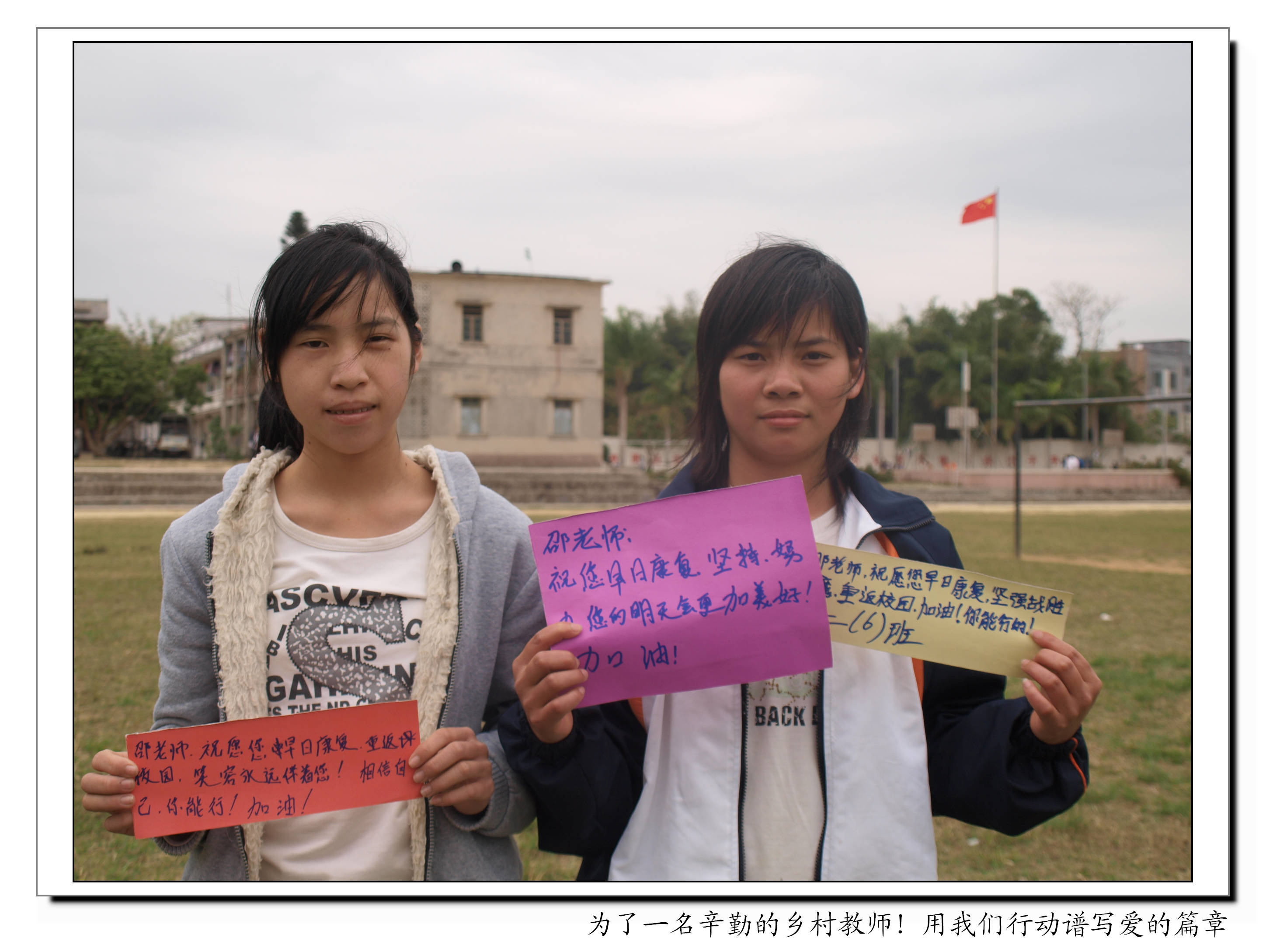 感谢电白县马踏镇的莫建强老板和蔡东先生为邵老师捐款,同时也感谢那些为邵老师捐款却不留名字的所有的好人!你们善心温暖了这个世界・・・・
