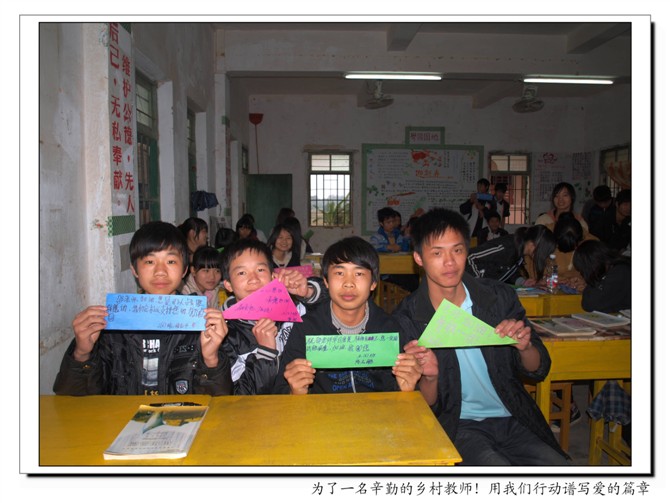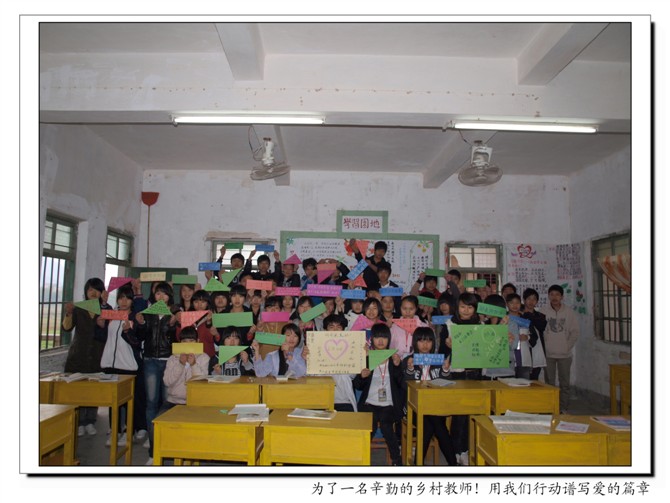 初三六班全校捐款最多的班级,然而让我感动的不是每次他们班捐款是最多的,而是今天走进他们的教室看到一颗颗善良的心,那种对老师的真诚,让人无比感动。当我临走时跟他们说谢谢时,他们说:老师我们应该谢谢你,给一个这么好的机会给我们!