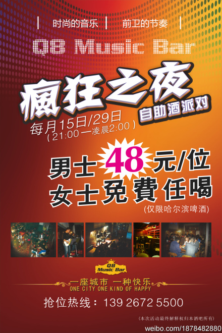 J jackie444 荣誉会员 荣誉会员 注册 2006-05-10 消息 2,241 反馈评分 3 点数 61 年龄 42 2011-05-11 #1 Q8酒吧 疯狂之夜 男士48元/位 女士免费 任饮! 地址:棕榈园魅力东方直下20米 附件 6ff75fc0gw1dh2ajn4n72j.jpg 209.1 KB · 查看: 359