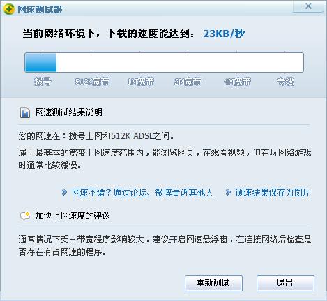 QUOTE(kxx @ 2011年07月16日 Saturday, 01:38 PM) 如果用的是路由器也会有所影响 [snapback]3181202[/snapback] 我也不专业,不大懂,估计是跟电脑也有很大关系的。 通常是测速设备连接到网线端(未连接电脑)的速率。