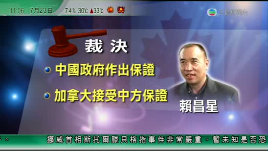 加拿大联邦法院在对赖昌星遣返案进行了3个多小时的聆讯后,于温哥华时间21日下午6时作出判决,驳回赖昌星暂缓执行遣返令的申请,决定执行赖昌星的遣返令。