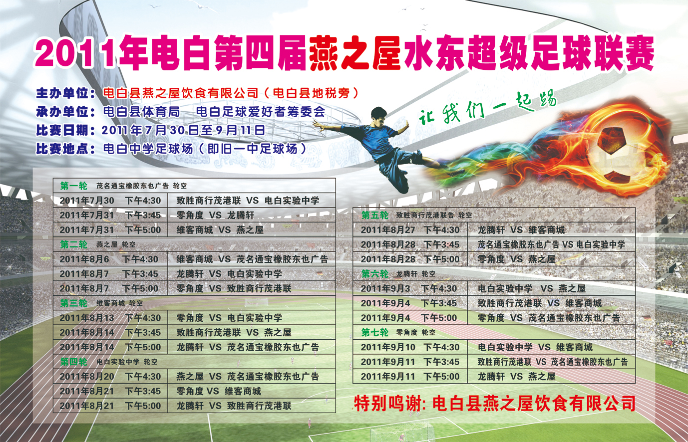 2011年电白县第四届燕之屋水东足球超级联赛赛程