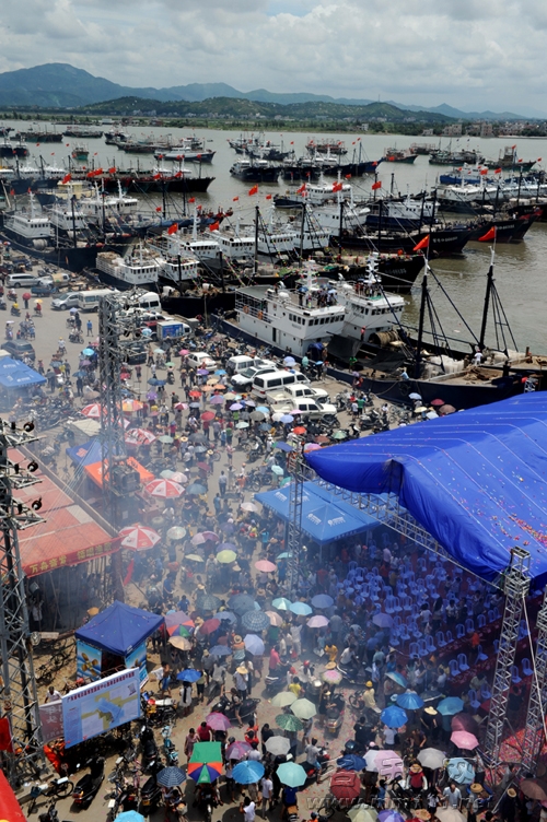 8月1日中午12时,随着一声开渔令,博贺渔港千船竞发,一年一度的电白县开渔节在这里举行。这意味着在经过了两个半月的休渔期后,渔民们又开始新一轮的耕海征程。国家农业部南海区渔政局副巡视员刘桂茂,茂名市委常委、电白县委书记李玉楷,茂名市副市长李观来以及省海洋和渔业局、电白县等领导出席了开船仪式。