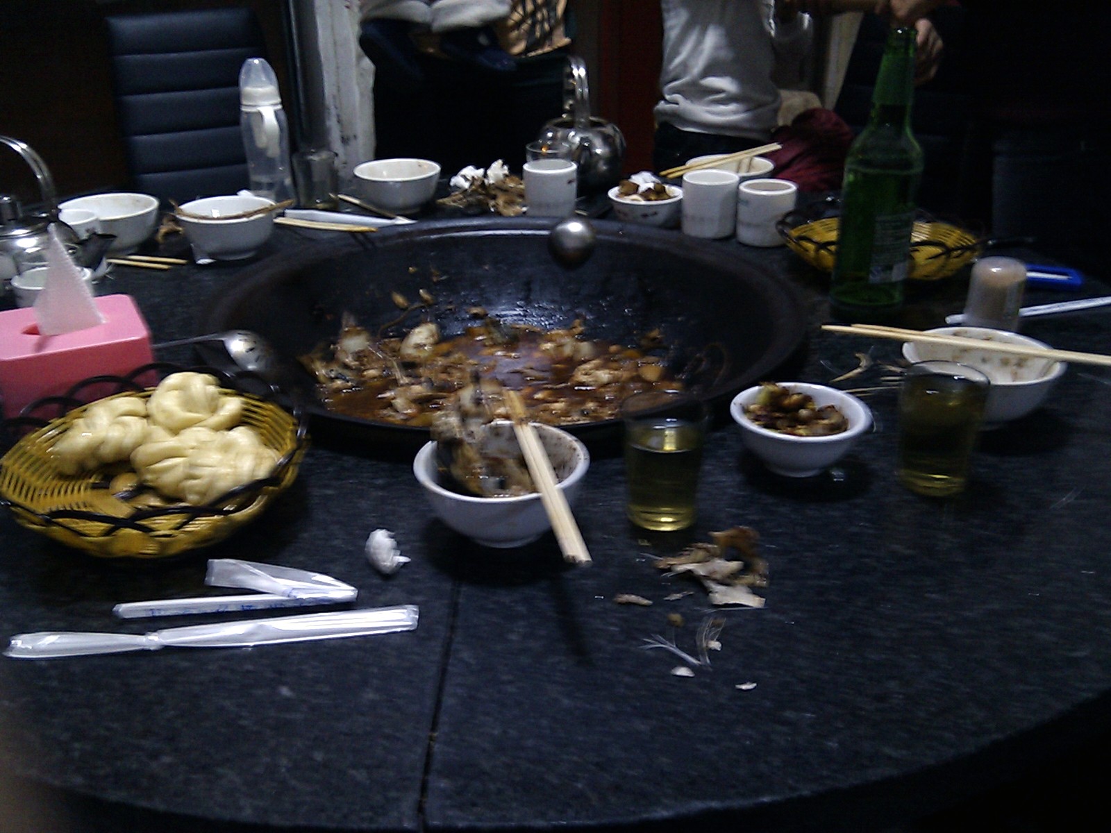 我不喝白酒的,浅尝一下而已,半小口,再多当场趴下的.所以我推来推去,只喝点啤酒,结果哥们就来了一打特制的哈尔滨啤酒,这下完了,今晚非要吐了,解酒丸也没有带....