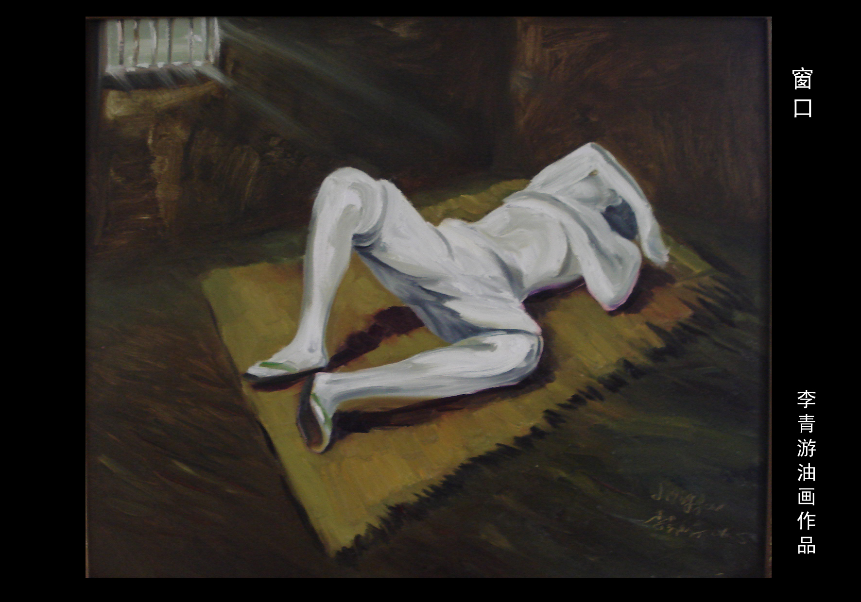 @李青游:这是一幅我内心犹豫了许久的画作.主人公是我的一位朋友,从小父母双亡,十六岁外出打工,放工后在工地里拾了二只被工人遗弃的灯炮,看门保安说盗窃,他进了拘留所,当时唯一写信告诉的人只有我,也许此时我就是他的心灵寄托.