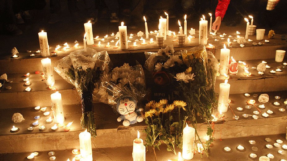 兰州民众为甘肃幼儿园校车事故遇难幼儿祈福