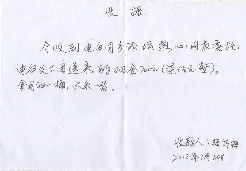 我认为还是应该让受助人写下收据为好,义工团这样做有必要啊