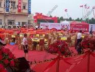 本人曾见识过,“各位嘉宾――入席”、“服务员上菜”一声浓厚的男中音经一位县文化剧团的司仪用麦克风喊出,一行十桌,共五行在自家院内运动场整整齐齐摆开,衣着统一服装的服务员轮流依次上菜。这个情景就是羊角田心村的一大户人家的年例了。