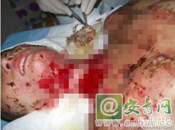 受害人周某在安医大附院重症病房经7天7夜的抢救治疗才脱离生命危险,但伤势已极为严重,其头面部、颈部、胸部等严重烧伤,一只耳朵也烧掉了,烧伤面积超过30%,烧伤深度达二度、三度,整个人完全面目全非。