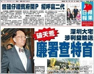香港廉政公署首次决定调查在任香港特首,因为后者涉嫌在深圳接受豪宅之类的利益输送。大陆,有这样的廉署么?(源自网络)