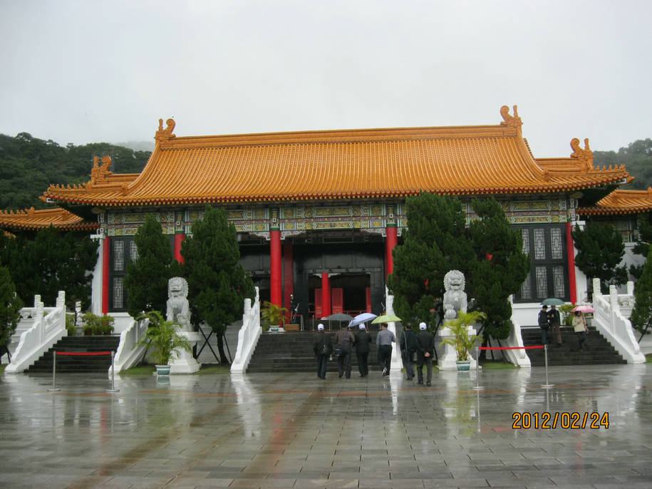 由于下雨,没法拍到故宫博物馆的外貌,里面不准拍照,只拍了大厅的孙中山铜像。