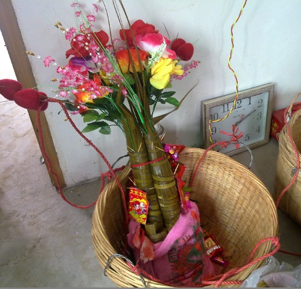 这两根大粽子象征新婚的夫妻,花叶象征他们生枝开花结子,下面捆在一起就是他们的子女了!女子的娘家粽子祝福新郎新郎早生多生儿女。