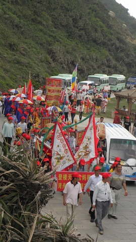 今天放鸡岛老板请登楼村300几人过放鸡岛迎接台湾天后官妈祖.