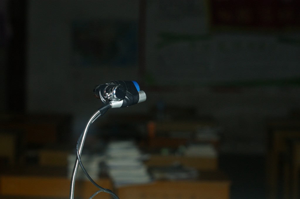 装好广角镜后效果确实好,只是韩国货也不怎样,彩色变成黑白了。然后就是在教室里安装了,安装也不容易,用网线改装了一条USB延长线。长线由于供电不足导致图像失帧,基本录下来的都是慢动作,不过也基本可以了吧,反正也主要是监视那些在课堂上捣蛋的人。但用起来的一两个星期,软件经常会出错,问题就是USB线太长了。最后干脆把延长线拔了,把摄像直接按在讲台上,然后捆绑在可以自由活动的麦克风头上。这样子,虽然不能监视全班,但可以任由科任老师使用,那部分人不听讲的就扭摄像头过去照着(这也后来才发现有趣的事情)。