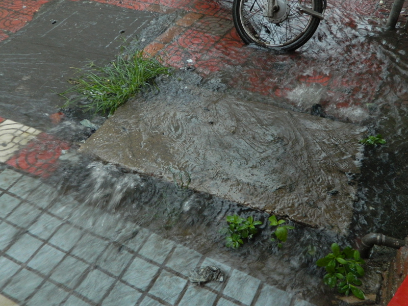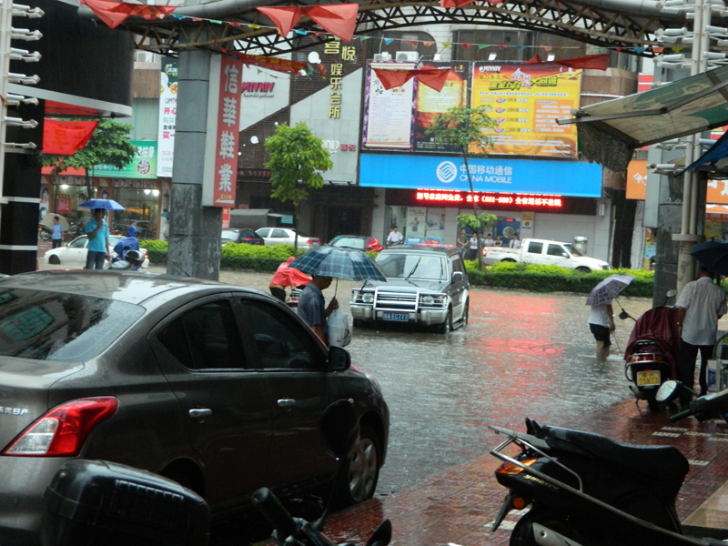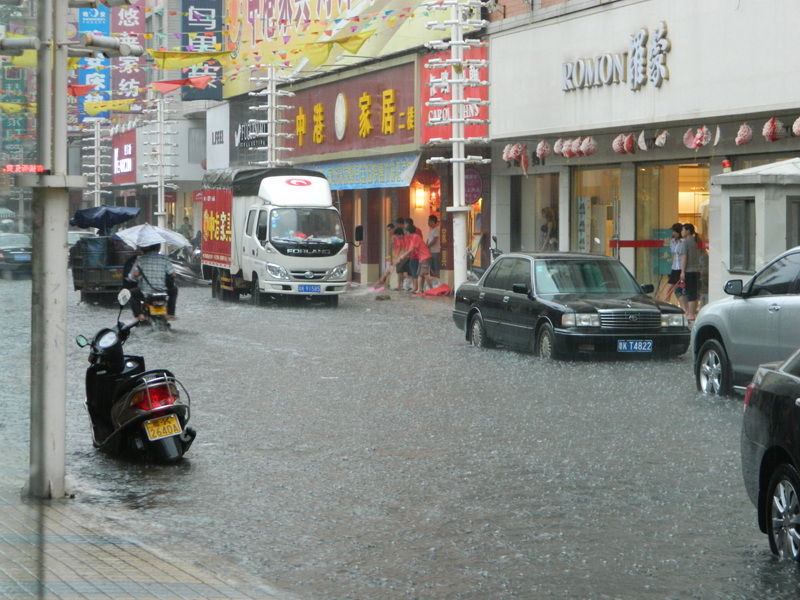 1、解放路转弯即水东医院路段浸水(也即狗肉档门口)