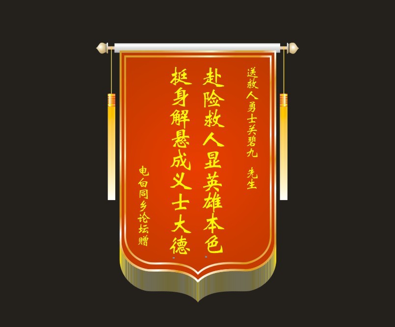 QUOTE(徐长卿 @ 2012年06月16日 Saturday, 10:55 PM) 暂定下周4或5傍晚 赠送锦旗一面,并表示点心意 锦旗内容如何写,现在向各位征集,欢迎发表内容。 [snapback]3373544[/snapback] 若还有位置,我派私人代表前往参与。 QUOTE(tiansan @ 2012年06月16日 Saturday, 11:48 PM) 一颗善心憾天地 万民敬仰谢英雄 [snapback]3373562[/snapback] 好句!!!