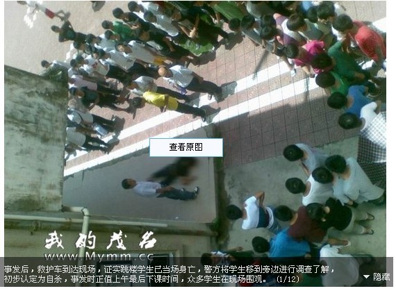 这 这个号没人注册 博士后 注册 2010-03-15 消息 1,759 反馈评分 0 点数 61 2012-08-09 #7 昨日下午,在该校的大门口,挂着“欢迎高三学生回校上课”的横幅。占国生的母亲哭倒在儿子轻生的教学楼下。其他亲人则四处寻找其短信中提到的学校的“三位领导”。他们想问问,占国生与这三位“学校领导”之间到底发生了什么。 “没有找到,也没有人告诉我们之前发生了什么。”占小燕说,班主任告诉他们,占国生在班上的成绩还算好,他不知道占为什么发短信说自己被学校三位领导辱骂。