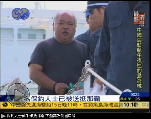 保钓人士戴手铐抵那霸 与日警方发生轻微冲突 被日方扣押的5名香港保人士16号上午已被送抵那霸,看起砩硖r良好。 遭日方扣押的“启丰二号”登岛五人16号上午被海上保安厅巡逻船送至那霸,他们陆续走下船,手上都带着手铐,看起来身体状况良好。第一个走出来的保钓人士高喊“日本要滚出钓鱼岛”的口号,第二个人也高喊“钓鱼岛是中国的领土”并与日本警方发生轻微冲突,上车时差点被警员按倒在地。 另外九名被扣人员预计将于16号傍晚抵达那霸。日方称逮捕後向中方人员提供了食物。