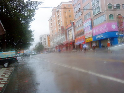 谢了!这些图虽拍得不好,但的的确确是在台风大雨吹起与最大的时候拍摄的,只想让远在他乡与没能出街的老乡,了解些片面实况,也可能有客观原因,大家提前知晓,提前预防有关吧.也可能有关方也做了点工作吧???