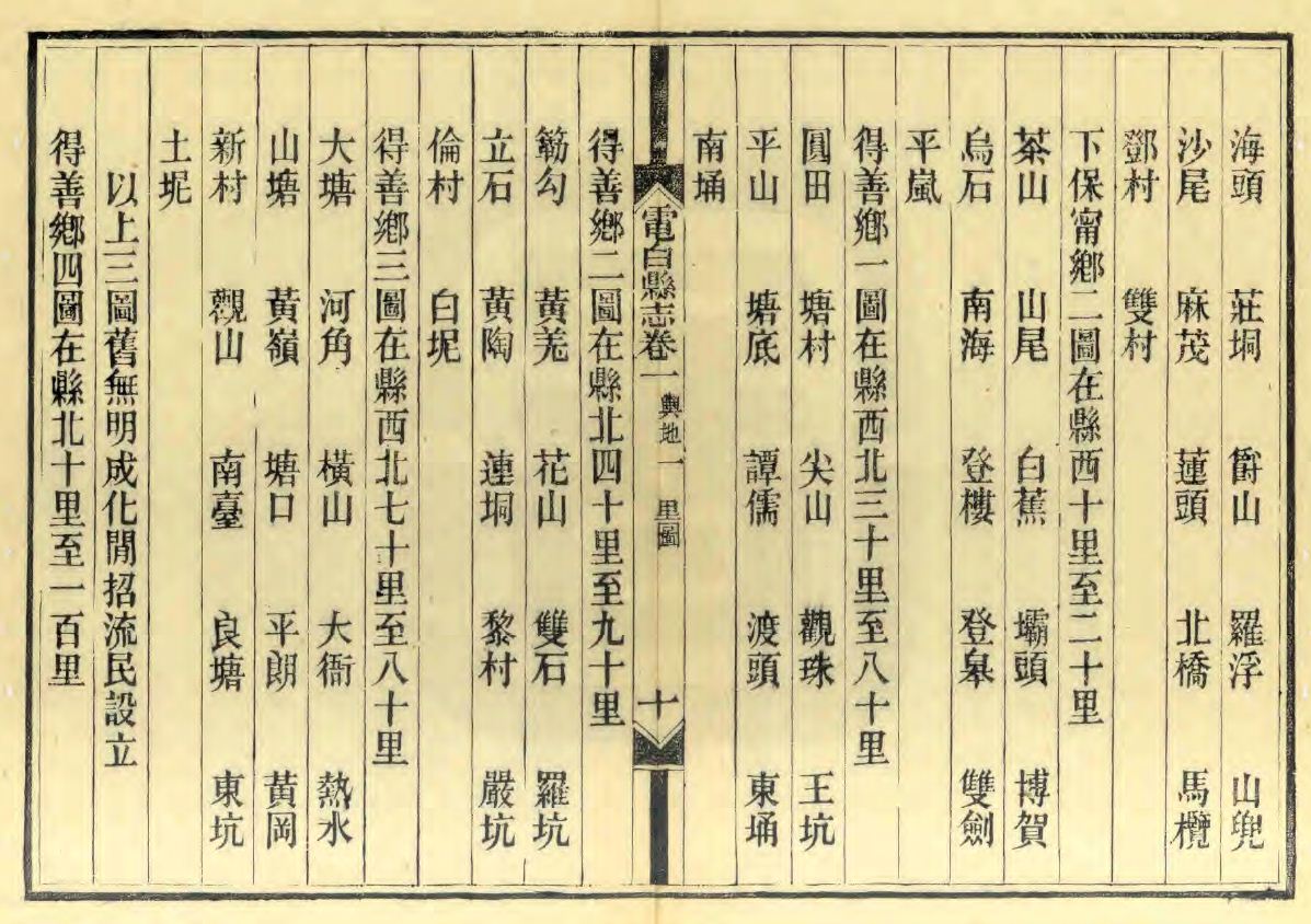 三图在电城西北70至80里,小乡有河角、横山、大衙、热水、山塘、黄蛉、塘口、平湖、黄冈、新村、观山、南台、良塘、东坑、土泥等。